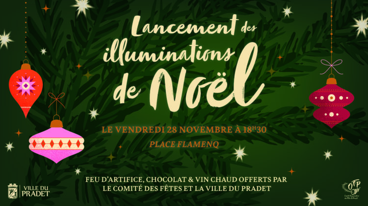 Venez vivre la magie de Noël au cœur du centre-ville du Pradet ! La Ville vous invite à assister au lancement des illuminations, accompagné d’un feu d’artifice.