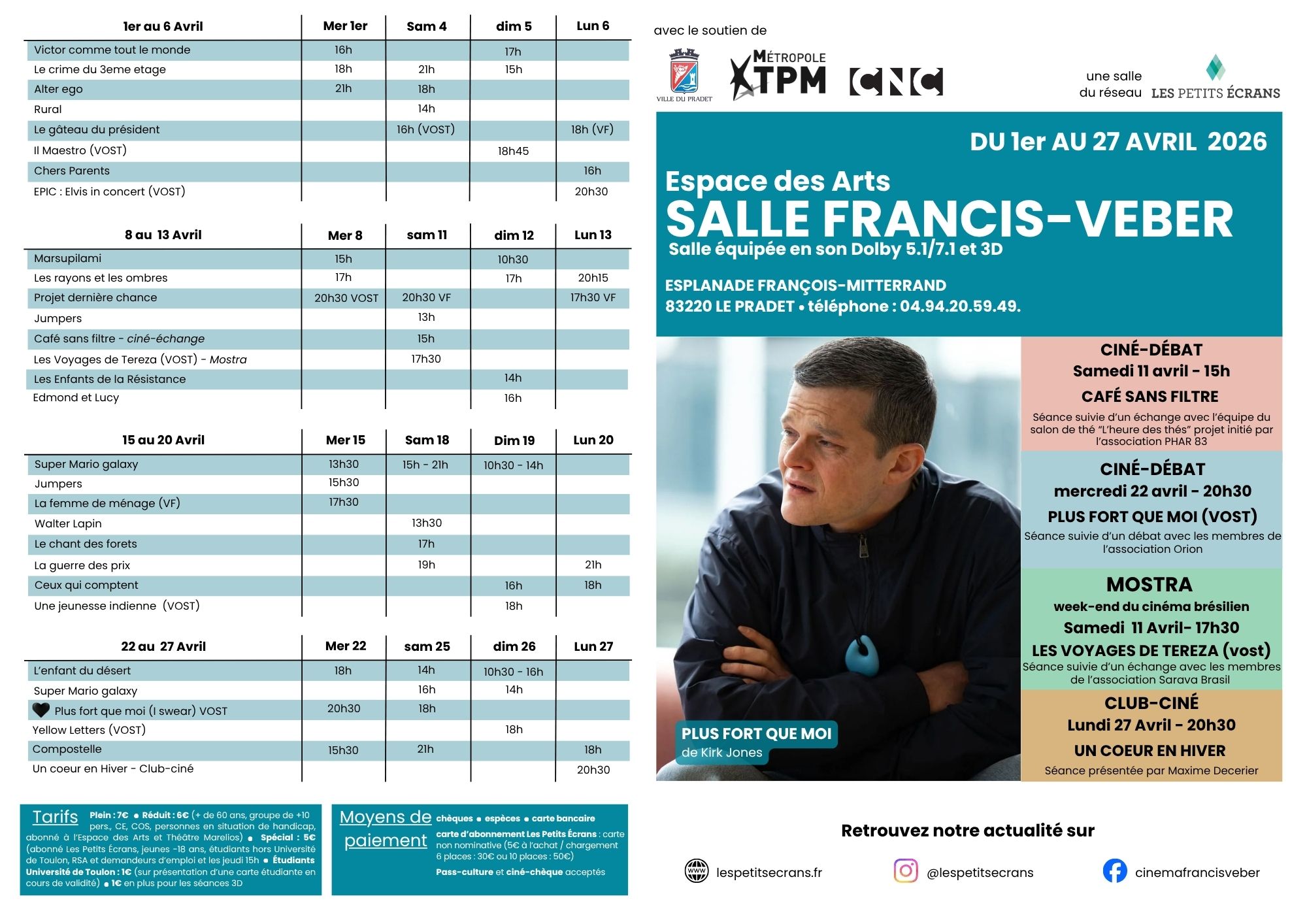 • 1€ pour la location de lunettes 3D en séance 3D, louées pour la durée de la séance