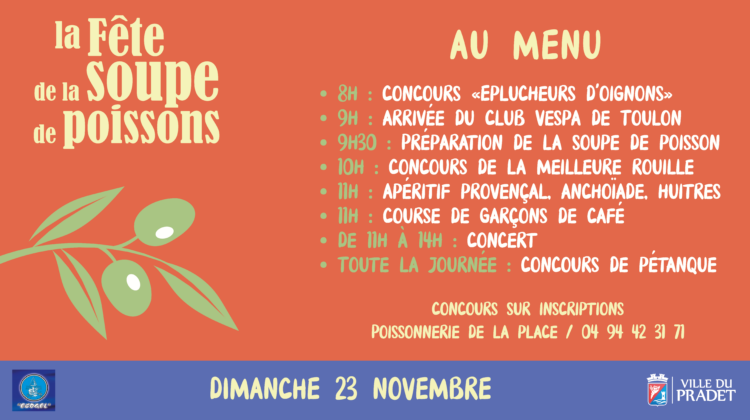 La Ville du Pradet vous invite à célébrer la Fête de la Soupe de Poissons, un moment convivial et festif pour toute la famille !