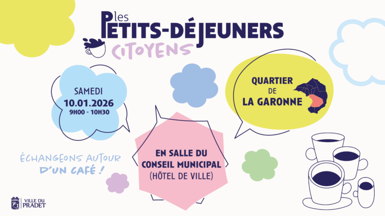 Le prochain petit-déjeuner citoyen aura lieu samedi 10 janvier à 9h en salle du conseil Municipal. Il concernera le quartier de La Garonne.