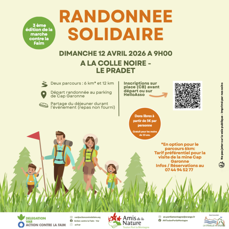 Action contre la Faim Var et Les Amis de la Nature de Toulon Port la Montagne organisent la 3° édition de la Randonnée Solidaire .