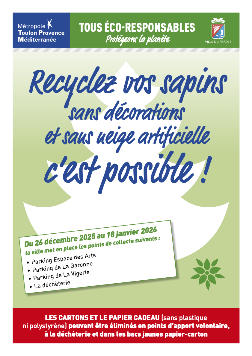 Pensez à vérifier que les sapins sont dépourvus de neige artificielle et de décorations lors de votre dépot.