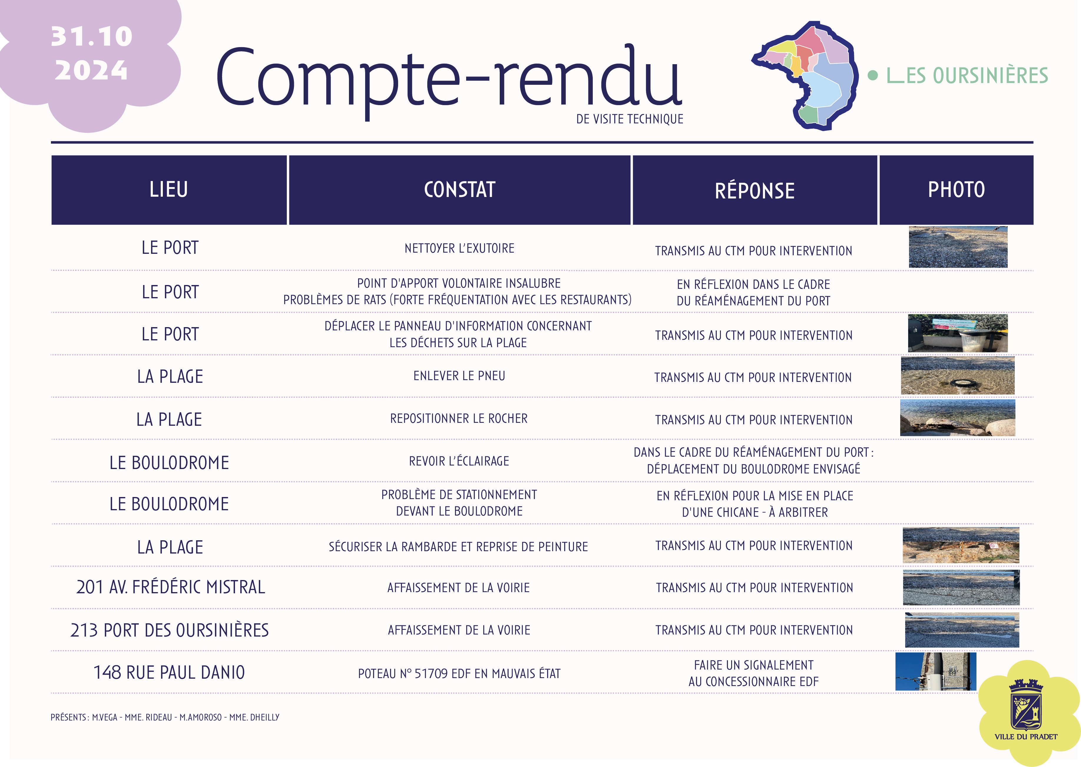• Compte-rendu de la visite technique du 31 octobre 2024 :