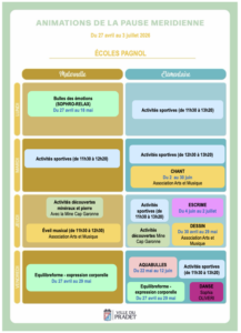 Programme Pause Méridienne PAGNOL- Période 3 – 2026