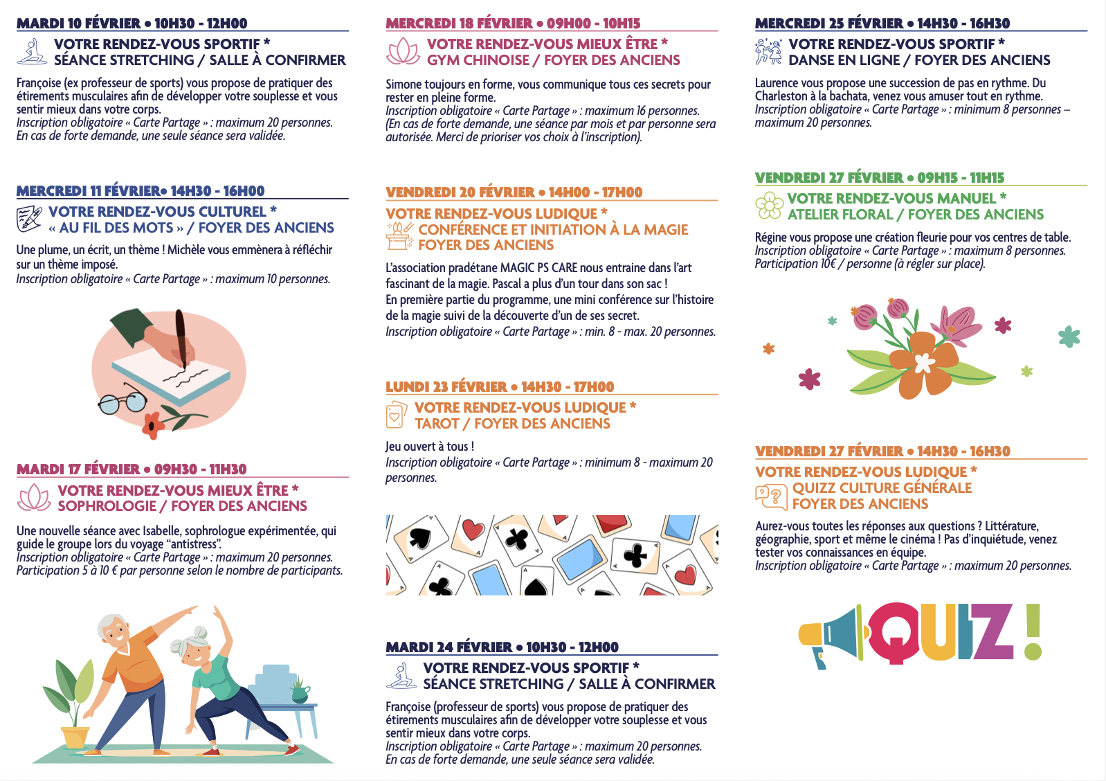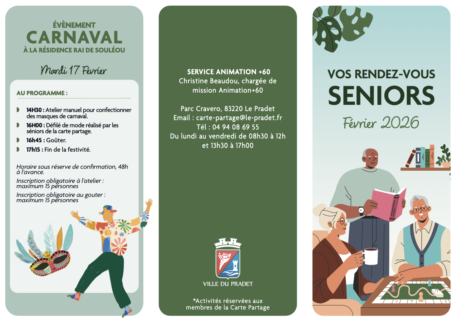 La ville du Pradet vous présente la nouvelle « Carte Partage », proposée par sa Mission Animation + 60, dès ce mois de septembre et le « Guide des séniors actifs » disponible en ville (Office de Tourisme, Mairie, Espace des Arts etc.).