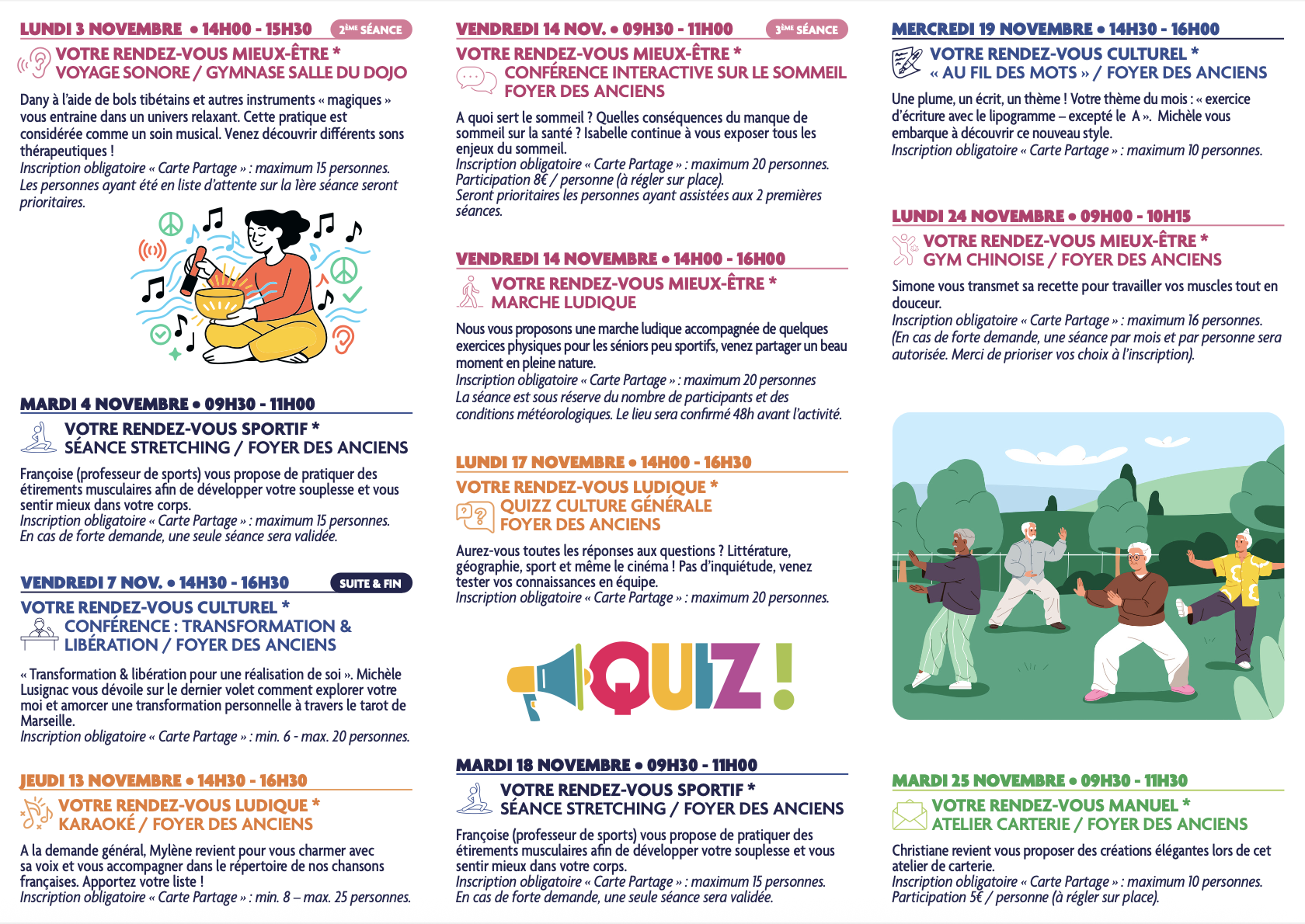 La ville du Pradet vous présente la nouvelle « Carte Partage », proposée par sa Mission Animation + 60, dès ce mois de septembre et le « Guide des séniors actifs » disponible en ville (Office de Tourisme, Mairie, Espace des Arts etc.).