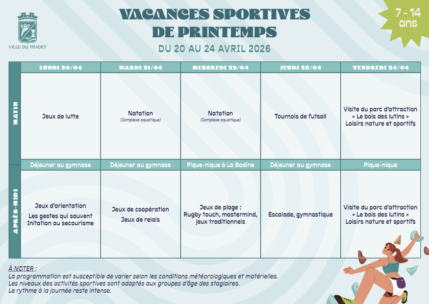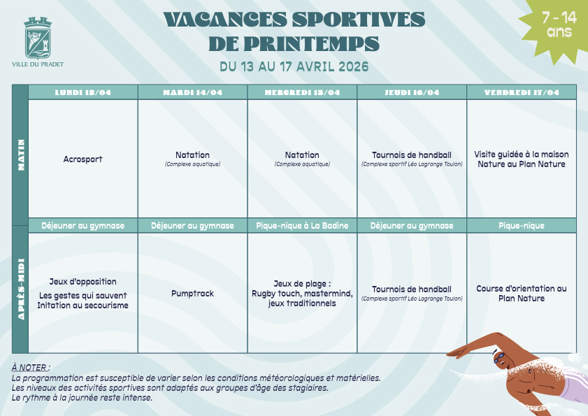 Les stages multisports et aquatiques permettront la découverte aux différentes activités sportives : athlétisme, basket, rollers, randonnée, vélo, jeux collectifs, soft ball, activités nautiques l’été et des sorties ludiques ….